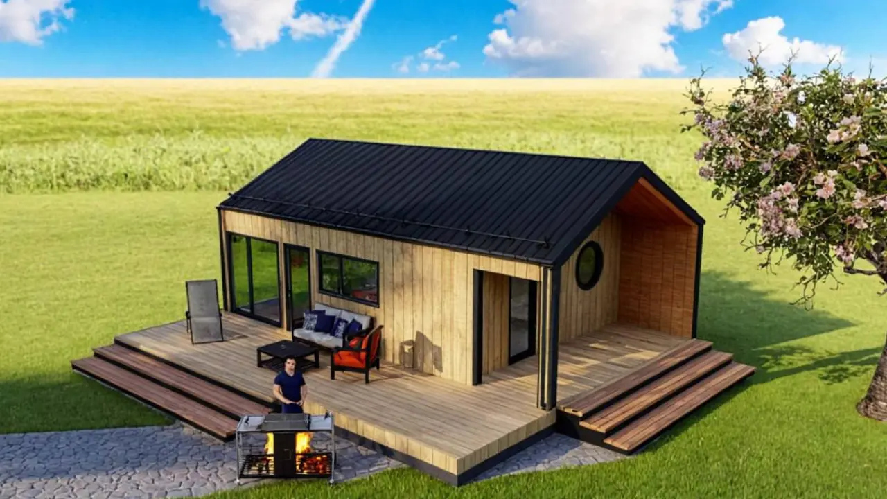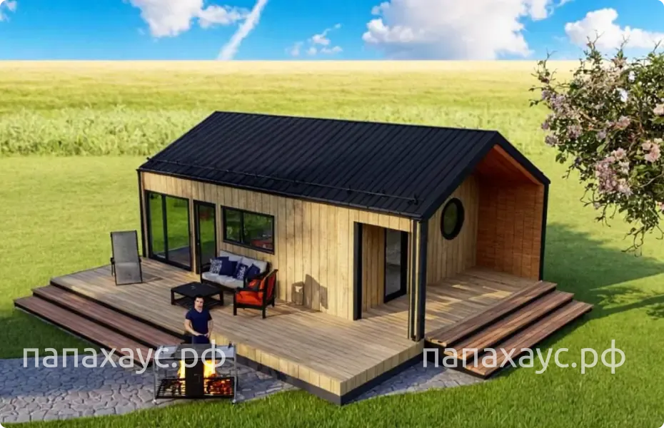 Современный барнхаус — 48 м² жилой площади + террасы 37 м². Общее пятно застройки — 85 м².